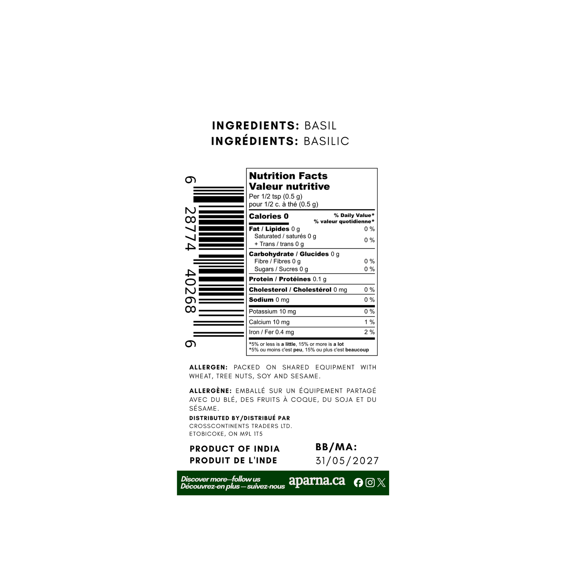 Order Aparna Foods Basil Leaves 170g today and enjoy premium dried herbs delivered fresh across Canada.